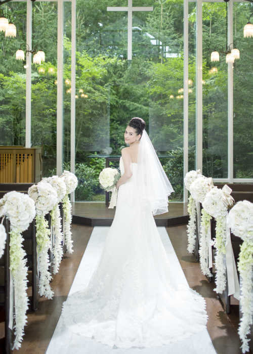 そのドレスは空間に映え、花嫁の美しさを最大限に引き立てます