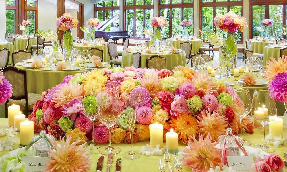 会場やテーブルを美しく彩るお花、ウエディングドレスの魅力を