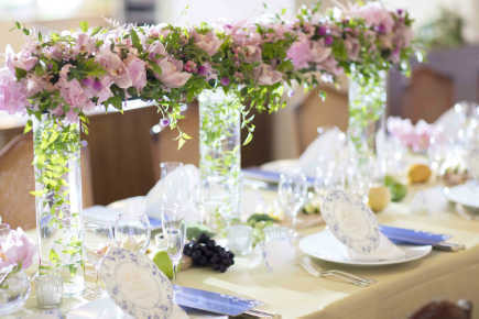 会場やテーブルを美しく彩るお花、ウエディングドレスの魅力を